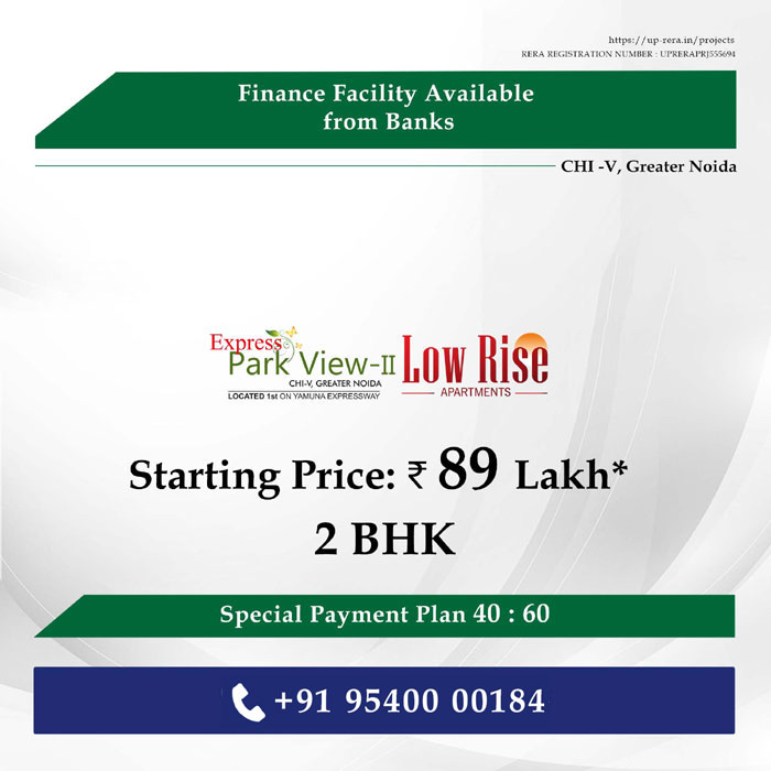 The IITL Nimbus Group is proud to present its Premium Low Rise Apartments at Express Park View II, CHI-V, in Greater Noida Yamuna Expressway. These handfuls of Premium habitats offer its occupants a sublime luxury living in the most tranquil settings of nature. Low-rise apartments are the special category of luxury homes that offers utmost privacy and peaceful living. Express Park View-II will deliver 2 BHK and 3 BHK low-rise apartments in varied sizes and floor plans. The 3BHK apartments come in two variants – one with 947 sq ft and the other 1209 sq ft carpet area. The 2BHK apartments come in sizes 678 sq ft and 726 sq ft respectively.
